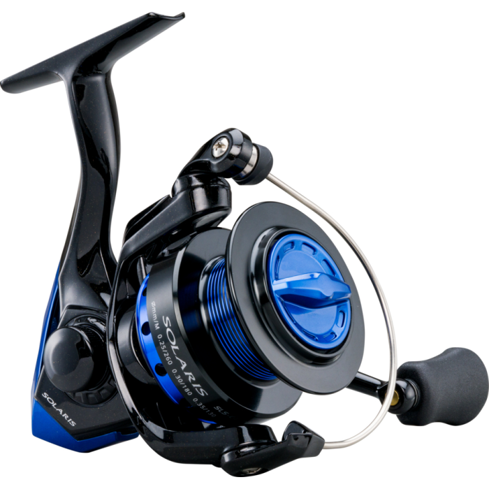 Спінінгова котушка Okuma Solaris оснащена стійким до корозії графітовим корпусом і металевою ручкою, 5 шарикопідшипниками + 1 роликовим підшипником, чорною алюмінієвою шпулею з блакитним анодуванням і системою швидкого ...