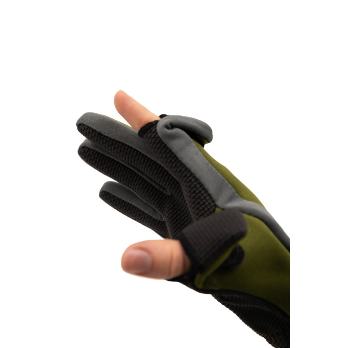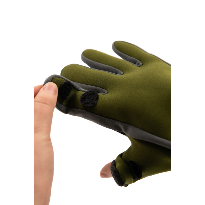 Особливості: неопрен товщиною 1,5 мм захищає від вітру, вологи тахолоду. Антиковзні накладки забезпечують надійний хват вудилища. Фаланги вказівного та великого пальців можна відкривати і виконувати саму тонку роботу зі снастями. Ремінь на зап`ястку забезпечує комфорт і перешкоджає попаданню снігу та бризок води в середину.