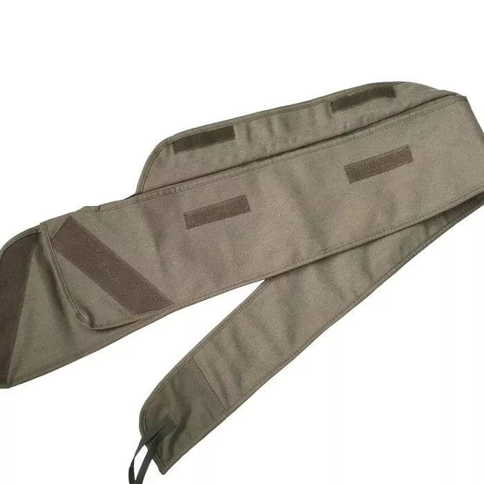 Захисний чохол для мисливця одягається поверх зброї. Перенесення рушниці в чохлі відбувається за допомогою ременя від неї. Чохол закривається текстильними застібками (липучками). Торці футляру додатково укріплені тканино...