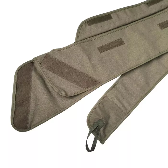 Захисний чохол для мисливця одягається поверх зброї. Перенесення рушниці в чохлі відбувається за допомогою ременя від неї. Чохол закривається текстильними застібками (липучками). Торці футляру додатково укріплені тканино...