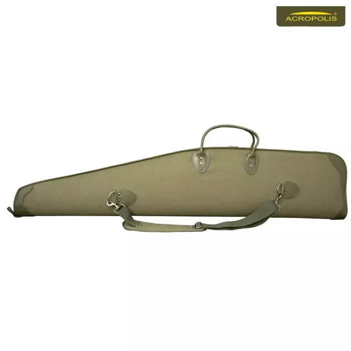 Футляр для гладкоствольної напівавтоматичної зброї, виготовлений з натурального брезенту, пластику, пінополіетилену. З середини - бережна велюрова підкладка. В комплекті з мисливським футляром є ремінь, який корегується по висоті для зручного перенесення виробу на плечі мисливця. Зверху нашиті кишені для аксесуарів. З боків - ручки з м’якою накладкою для транспортування. Кожна ручка футляру додатково прошита та укріплена хольнітеном. Накладки з натуральної шкіри додатково захищають краї футляру. Експлуатаційні особливості Акрополіс ФЗ-8/30: надійна фіксація зброї в зібраному вигляді, протиударність корпусу, виносливість до морозу, водовідштовхуючий матеріал.