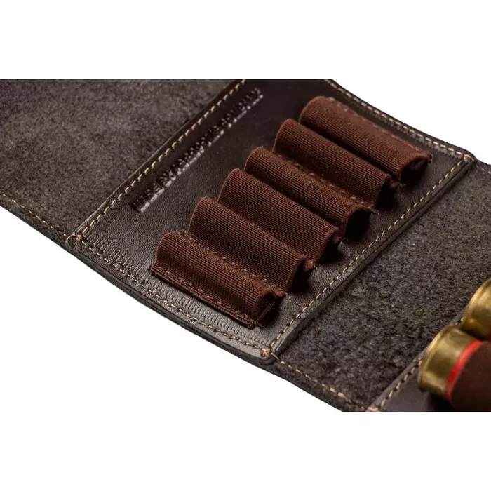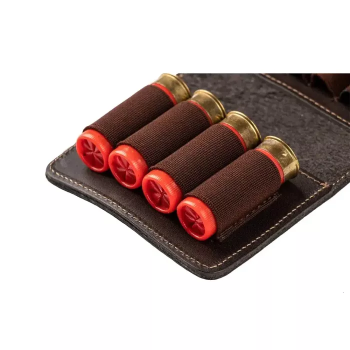 Матеріал виробу - натуральна шкіра. Футляр закривається спереду на латунну скобу, що не окислюється з часом. Практичний подарунок для чоловіка, який захоплюється полюванням.