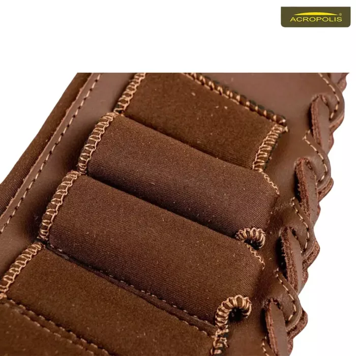 Муфта виготовлена з натуральної шкіри, брезенту, неопрену. Зверху патронташ для 3 набоїв гладкоствольної зброї 12-20 калібру та 2 набоїв для нарізної зброї калібру 30-06. Муфтакріпиться до прикладу за методом шнурування....