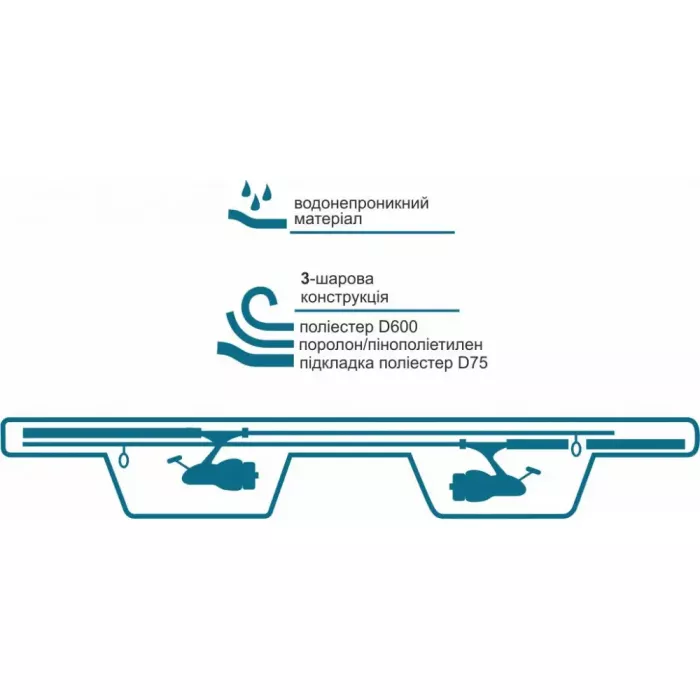 На іншій стороні чохла є місце для транспортування 3-х запасних вудилищ без котушок. Для цього є спеціальне кріплення стрічками з липучками на двох рівнях.