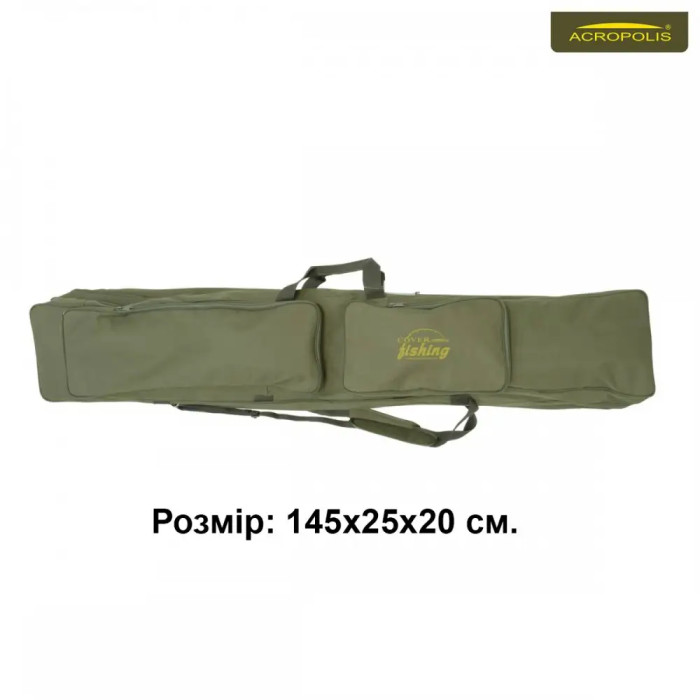 Чохол Акрополіс КВ-20 - 3-х секційний, м'який, для вудилищ з котушками. Одну секцію можна використовувати для перевезення парасольки, подсачка, "кобри" і аксесуарів. Бічні кишені для дрібних речей і стійок. Є два плечових ременя і ручки для транспортування. Якісний матеріал верху та хороша підкладка з середини. Практичний рибальський футляр на декілька сезонів риболовлі.