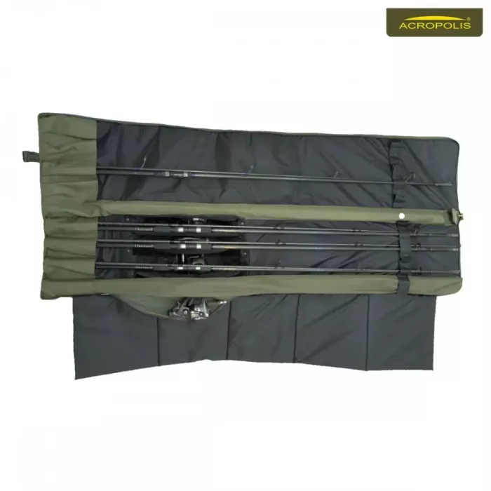 Великий рибальський чохол м'якої тришарової конструкції (в середині стінок - поролон (2 см) для транспортування 4-х карпових вудилищ без котушок і 4-х коропових вудилищ з котушками. Оснащений об'ємним відділенням під котушки (Banax, Shimano Big baintrunner), кишені для аксесуарів, фіксоване кріплення снастей, переносну ручку і наплічний ремінь. Має додатковий об'єм на кільце 50 мм.
