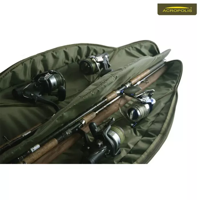 Акрополіс ФД-24 - це м’ягкий дуже компактний чохол для 4-х фідерних або коропових вудилищ з катушками до 6000. Довжина комеля (від краю вудилища до ножки кріплення котушки) не має перевищувати 55см. Розглянемо детальніше всі його характеристики (зробимо короткий огляд) – матеріал, розмір, особливості конструкції, місткість, зручність користування (під час транспортування вудилищ в автомобілі та носіння з собою на спортивних змаганнях, рибальських марафонах чи на любительській ловлі риби), співвідношення «якість - ціна».