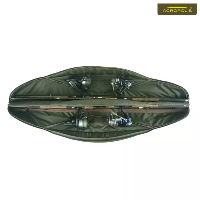 Акрополіс ФД-24 - це м’ягкий дуже компактний чохол для 4-х фідерних або коропових вудилищ з катушками до 6000. Довжина комеля (від краю вудилища до ножки кріплення котушки) не має перевищувати 55см. Розглянемо детальніше всі його характеристики (зробимо короткий огляд) – матеріал, розмір, особливості конструкції, місткість, зручність користування (під час транспортування вудилищ в автомобілі та носіння з собою на спортивних змаганнях, рибальських марафонах чи на любительській ловлі риби), співвідношення «якість - ціна».