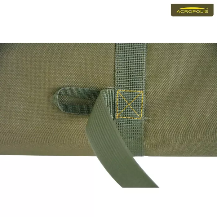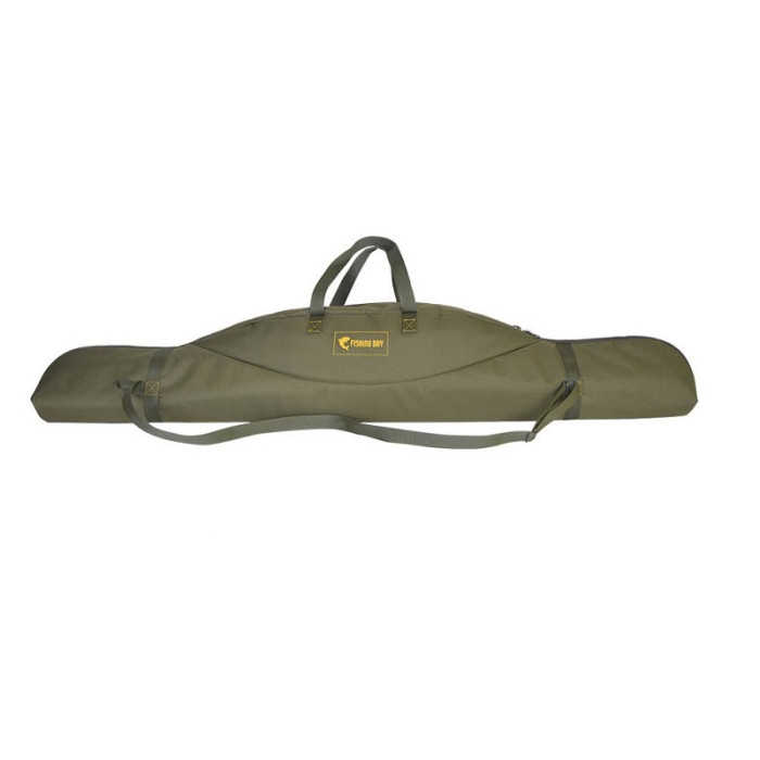 Зручність в процесі транспортування. Рибальський чохол оснащений двома ручками для переносу та плечовим ременем, який можна регулювати по довжині залежно від антропометричних даних (габаритів) рибака. В місцях кріплення переносних ручок та ременя, на виріб нашиті додатковї текстильні стрічки з міцного матеріалу, для надійності фіксації і зменшення до мінімуму ризиків розриву тканини.