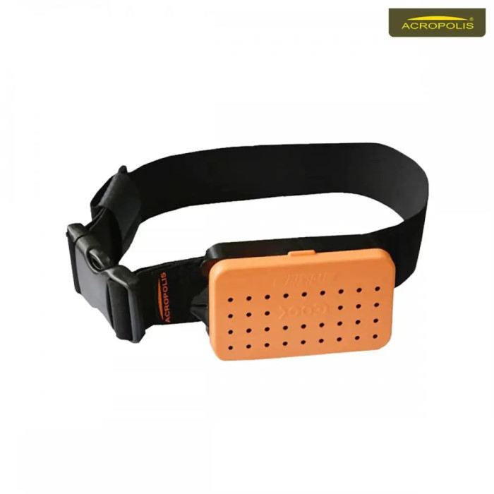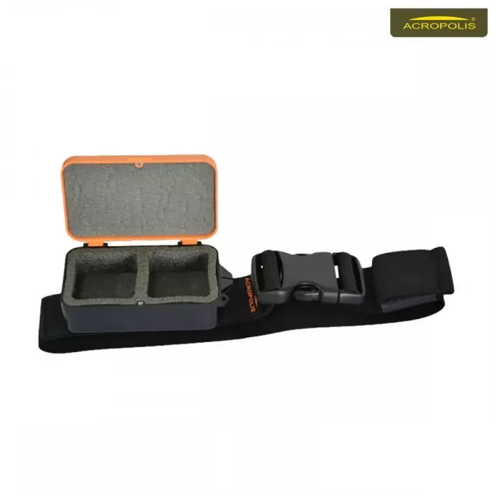 Коробка мотильниця Acropolis КМП-2 для зимової риболовлі. Використовується в зимовий час для зберігання мотиля, опариша і мормиша. Коробка мотильниця зберігає тепло і перешкоджає промерзанню наживки. Коробка кріпиться до платформи на стегно за допомогою текстильної застібки-«липучки». Платформа коробки КМП-2 кріпиться на стегно за допомогою пряжки-фастекс.