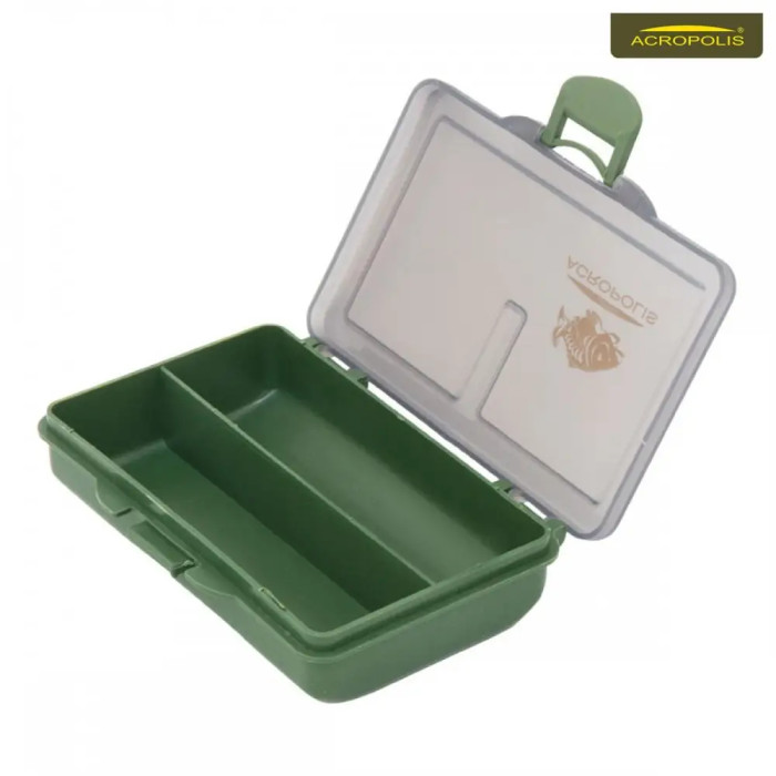 Коробка пластикова рибальська МБ-2 на два відділення для орбітів, воблерів, блесни. Ячейки мають опукле дно, щоб приманки не нищились, а акуратно розміщались окремо одна від одної. Має прозору кришку, закривається на надійну засувку.