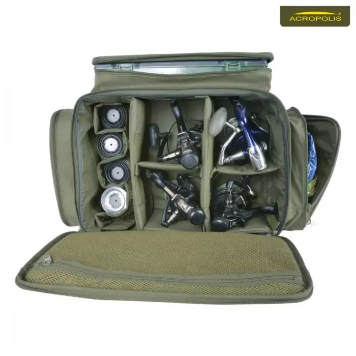 Практична та містка сумка для фідерної і флет-фідерної рибалки, куди компактно складається все необхідне для комфортної риболовлі, займаючи при цьому мінімум місця.