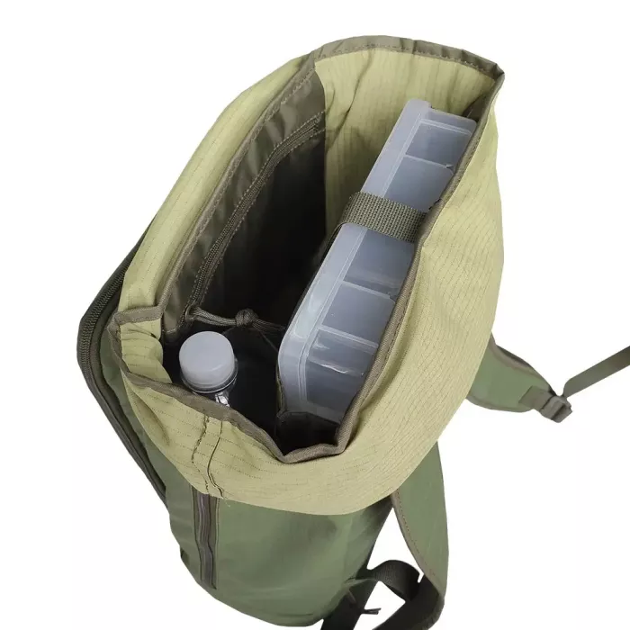 Зручний рибацький рюкзак для зберігання та транспортування снастей рибака. Виготовлений з міцного армованого матеріалу, надійно прошитий по периметру.