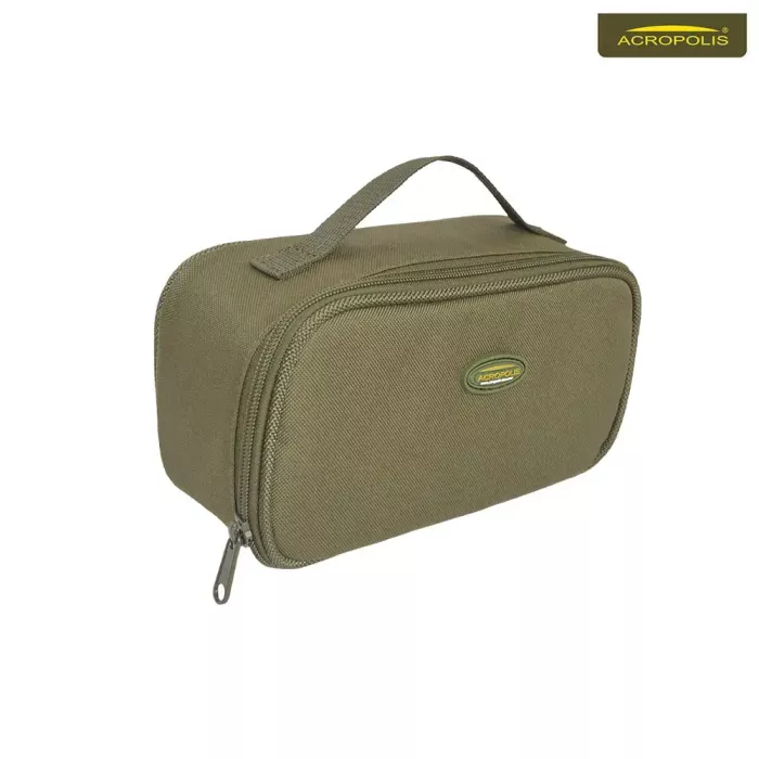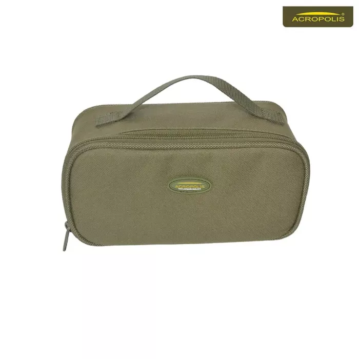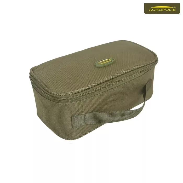 Термосумка для зберігання і транспортування дипів і атрактантів Акрополіс - СД-1н. Укомплектована двома напівжорсткими знімними модулями. Збоків та через дно виробу ззовні проходить міцна текстильна тасьма для укріплення каркасу. До неї надійно пришиті ручки для переносу. Зовнішня кришка сумки закривається на надійний замок-блискавку. За бажанням, сумку рибальську Acropolis СД-1н можна використовувати, як невеличку термо-сумку для напоїв та їжі під час відпочинку на природі, пікніку чи прогулянки в ліс.