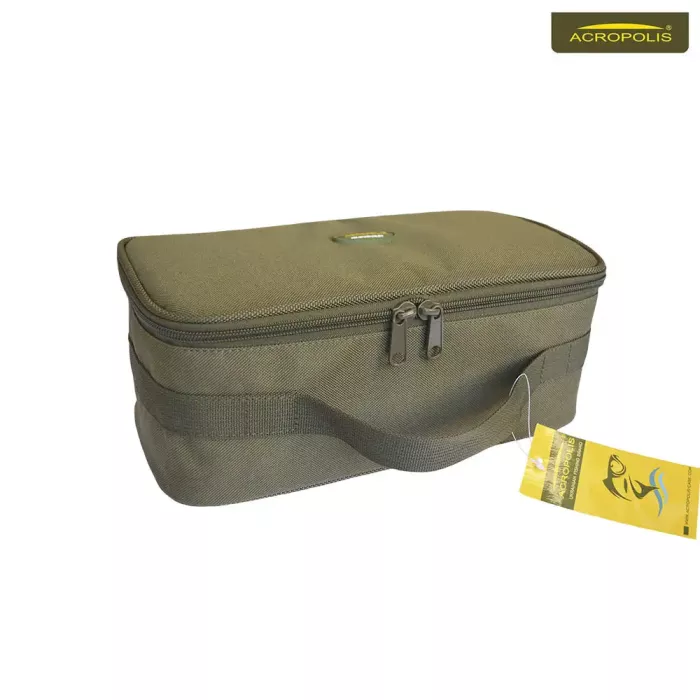 На дні сумки передбачене відділення для кукана та є кріплення для нього. Це дозволяє надійно закріпити пійману рибу. Особливо порадує рибаків зручна прозора кишеня для приманок, в якій ви без зусиль знайдете потрібну наживку. У спеціальній сітчастій кишеньці зручно зберігати пляшку з водою, що дозволить освіжитись у спекотний день. Сумка спінінгіста розроблена під рибальські коробки ТМ Acropolis. Все необхідне легко в неї поміститься і зникає потреба у додатковому спорядженні. Приємним бонусом служить невеличка кишеня для дрібниць, куди можна покласти цінні речі, гроші, документи чи мобільний телефон. Зауважте, що матеріал сумки – це водонепроникний поліестер високої щільності, що не тільки дозволяє вберегти вміст від потрапляння вологи, але й гарантує тривалий термін використання.
