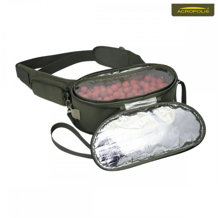 В разі потреби рибальську сумку Акрополіс ЗСК-1н можна використати, як термосумку для їжі по демократичній ціні. Ремінь фіксується на поясі за допомогою застібки фастекс. Верхня кришка закривається на «блискавку» з двома бігунцями.