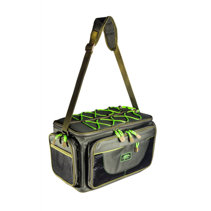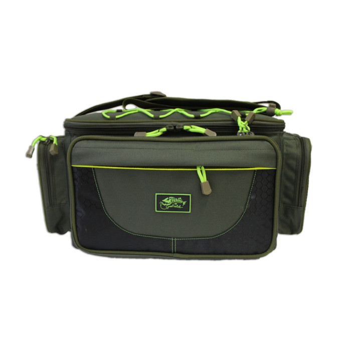 Сумка рибальська Tramp TRP-032 40х17х24 Зручна тканинна сумка з пластиковими ящиками для зберігання рибальських приладь. Сумку можна носити на плечі на регульованому по довжині ремені. Основне відділення укомплектовано двома великими пластиковими боксами - органайзерами для снастей на 6 відділень кожен. З боків - 2 кишені і петлі для кріплення аксесуарів На верхній кришці - шнур з фіксатором для навішування додаткового вантажу. Дно посилено вставкою зі штучної гуми з 2 ніжками-накладками. Характеристики : Обсяг: 16 літрів Матеріал: 1000D Oxford Розміри: 40х17х24 см Вага: 1, 765 кг