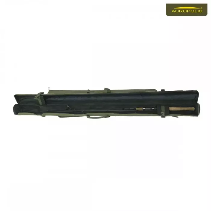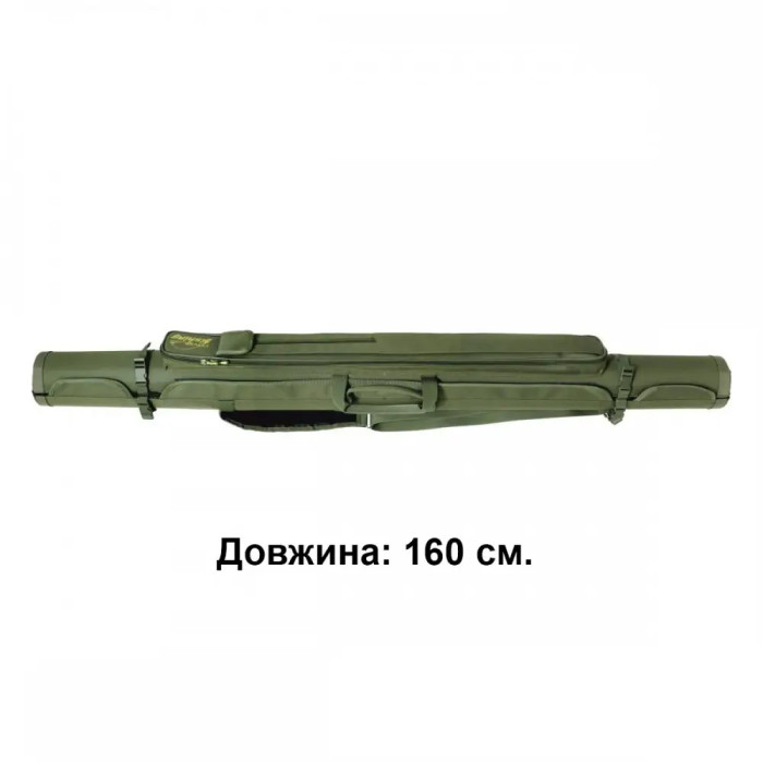Жорсткий кофр - тубус із горизонтальним завантаженням снастей. Призначений для зберігання і транспортування (до 4-х одиниць) делікатних спінінгів і вудочок без котушок. Має кишеню для стійок і підсака, наплічний ремінь, переносні ручки. По боках додаткові фіксатори у вигляді ремінної стрічки з застібкою "тризуб". Міцний і надійний рибацький аксесуар.