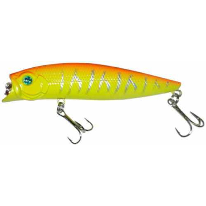 Поверхностный воблер, относящийся к семейству попперов. Отличный вариант для ловли в "крепких" местах водоема. Обладая хорошими полетными качествами, дает возможность облавливать средние и дальние дистанции. Приманка оснащена качественной фурнитурой и острыми крючками. При осуществлении рывковой проводки, издает характерное для приманок этого типа чавканье на поверхности воды, чем и привлекает к себе рыбу. Во время пауз занимает практически горизонтальное положение. Легок в освоении, этот поппер не будет лишним в арсенале как начинающего, так и более опытного спиннингиста