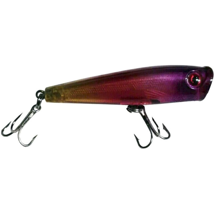 Поверхностный воблер, относящийся к семейству попперов. Отличный вариант для ловли в "крепких" местах водоема. Обладая хорошими полетными качествами, дает возможность облавливать средние и дальние дистанции. Приманка оснащена качественной фурнитурой и острыми крючками. При осуществлении рывковой проводки, издает характерное для приманок этого типа чавканье на поверхности воды, чем и привлекает к себе рыбу. Во время пауз занимает практически горизонтальное положение. Легок в освоении, этот поппер не будет лишним в арсенале как начинающего, так и более опытного спиннингиста