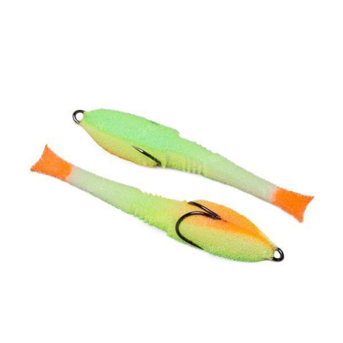 Поролоновая рыбка Проф Монтаж Dancing Fish 4,0" эффективная приманка для придонной ловли судака, щуки, и довольно часто - крупного окуня. Наличие качественных контрастных окрасок дает конструктивный выбор спиннингисту для получения максимального количества поклевок хищника. Хорошей уловистости способствует приподнятое ото дна положение, в котором рыбка пребывает при падении на дно - в трети случае атака хищника случается именно в этот момент. Особенно эффективна данная приманка на течении - тут можно сделать дополнительную паузу, рыбка сама будет играть под воздействием потока воды. Основная рекомендуемая проводка поролоновой рыбки базовая джиговая ступенька с выполняемыми время от времени небольшими подрывами оснастки кончиком спиннинга на 25-35 сантиметров. При неактивной рыбе успех часто приносит волочение приманки по дну. Поролоновая рыбка своим поведением максимально напоминает хищнику кормящегося со дна малька карповых рыб, форма тела поролоновой рыбки Проф Монтаж Dancing Fish привлекают как щуку, так и судака. Окунь свыше 500 граммов также проявит интерес к этой реалистичной, "живой" приманке.