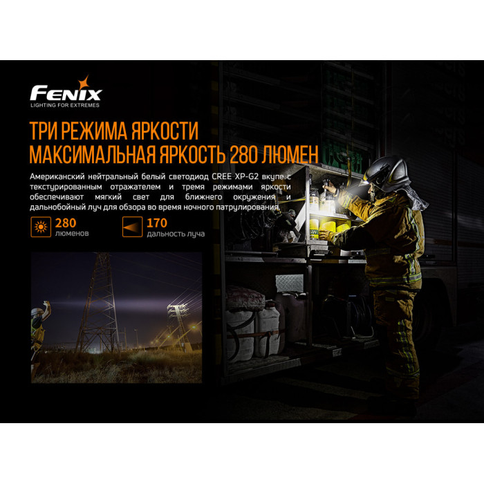 Функціонує на діоді XP-G2, американської компанії Cree. Ресурс експлуатації світлодіода становить 50 тисяч годин. В якості елемента живлення використовується акумулятор Fenix ARB-L21-2600ex літій-іонний. Максимальна яскравість, яку дає цей ліхтар, досягає 280 люменів. Три режими роботи. У комплекті разом з моделлю додається спеціалізована зарядка.