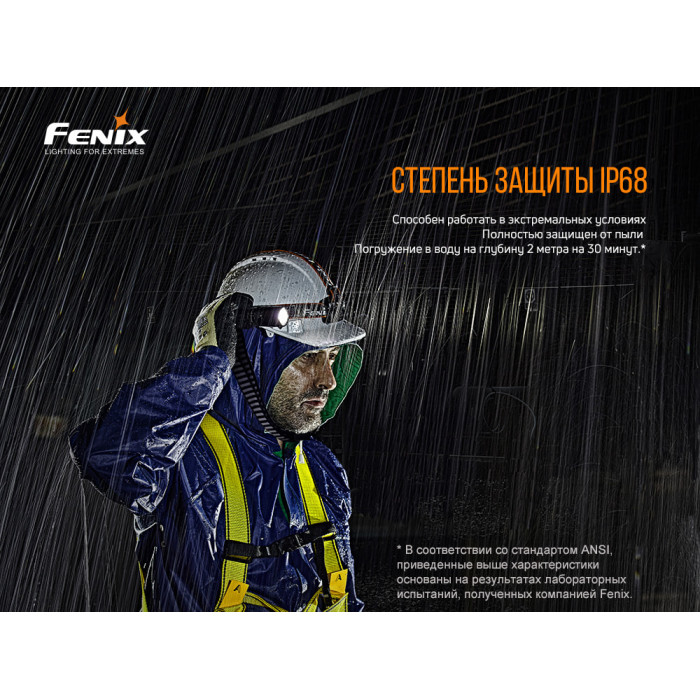 Ліхтар Fenix WF30RE ефективно захищений від впливу води. Він в змозі занурюватися під воду на глибину до двох метрів, і там функціонувати так само добре, як і на суші. Захищений від попадання пилу і вологи за стандартом IP68. Корпус зроблений з використанням міцного матеріалу – алюмінію A6061-T6, який характеризується стійкістю до окислення. Також корпус оброблений преміальним анодуванням HAIII, стійким до абразивних впливів. Легко переносить падіння з півтораметрової висоти, досить довговічний, і буде служити вам ефективно багато років. Екстремальні значення температур - також не проблема для цього надійного ліхтаря. Він добре пристосований до умов навколишнього середовища: зберігає працездатність при 35-градусному морозі і 45-градусній спеці. Оптимальний варіант для робочих потреб і активного відпочинку.