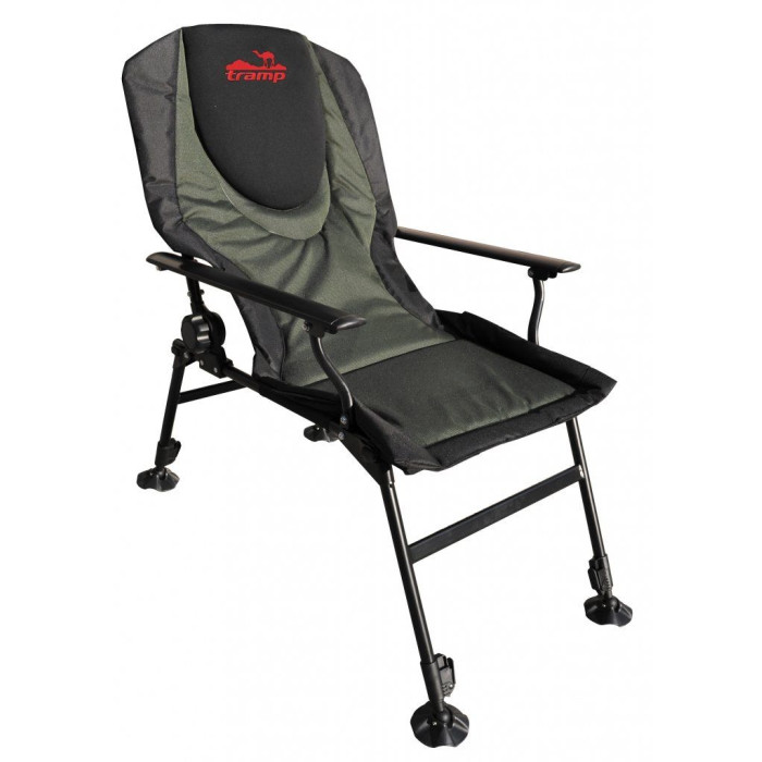 Крісло Tramp Chairman виконане на міцній рамі із сталевих трубок. Забезпечено сталевими підлокітниками. Оббивка крісла виконана з водонепроникного поліестеру 600D з водовідштовхувальним покриттям ПВХ і великою м'якою вставкою з неопрену в узголів'я. Крісло розраховане на максимальне навантаження 150 кг. Обладнано чотирма телескопічними ніжками, завдяки яким легко можна встановити крісло на практично будь-якій нерівній поверхні. На ніжках продумані широкі наконечники, що запобігають вдавлюванню ніжок в м'який грунт і занурення в пісок при навантаженні.