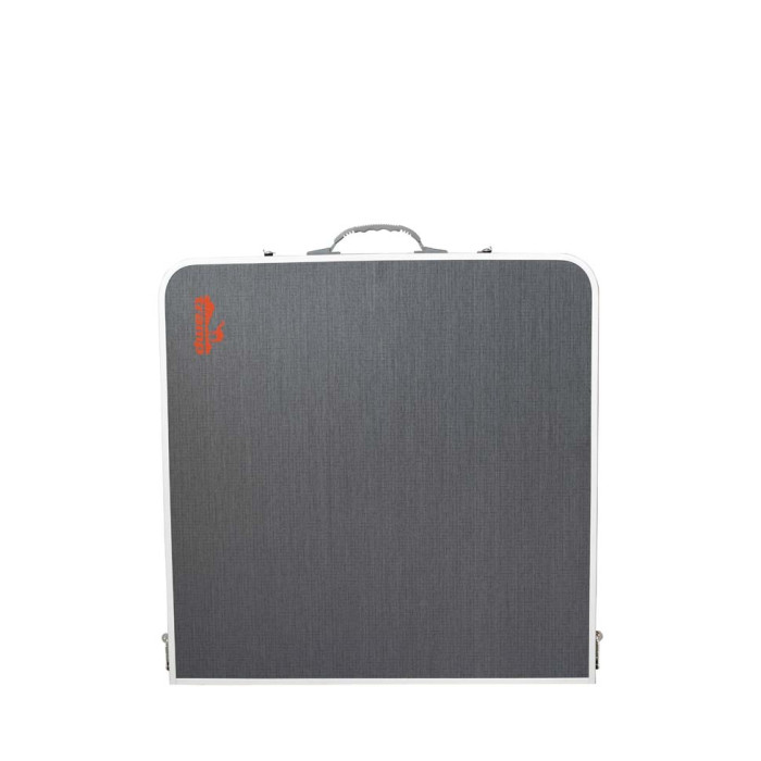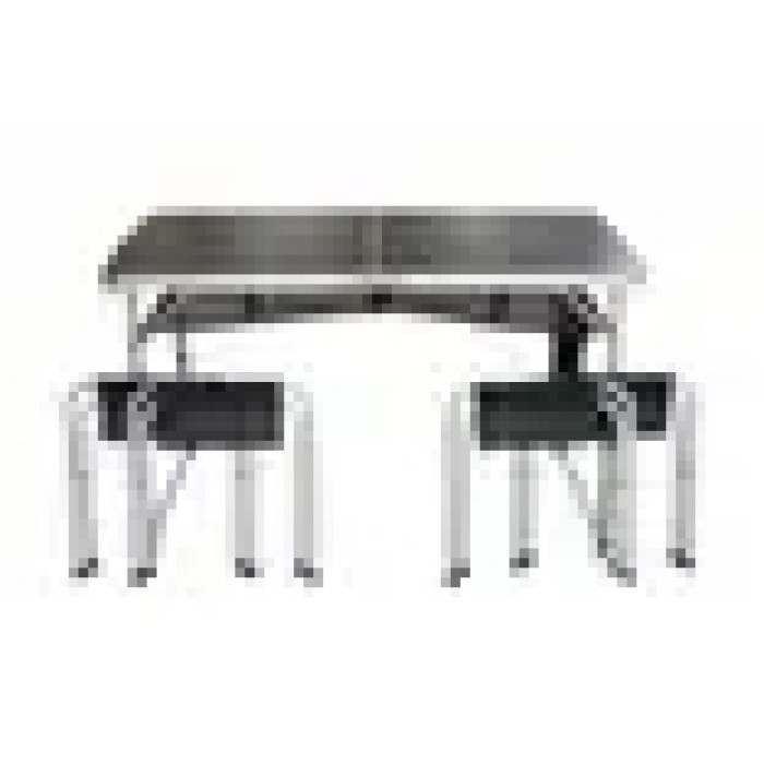 Стільці кріпляться до внутрішньої сторони столу, стіл складається навпіл як чемоданчик.