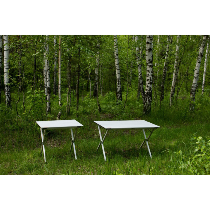 Складається «гармошкою» стільниця і складаний каркас столика виконані з легкого і міцного алюмінію.