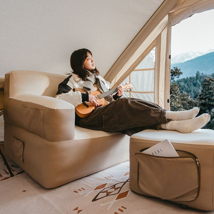 Пуф надувний з вбудованою помпою Naturehike CNH22DZ023, бежевий
