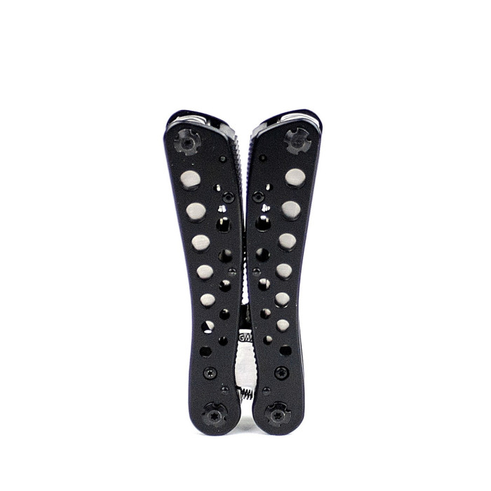 Рукоятки мультитула теж зроблені з металу і покриті чорною фарбою, що не стирається з часом. Поверхня накладок прикрашена за допомогою круглих отворів, які, одночасно, допомагають знизити вагу інструменту. Ganzo G204 важить 253 грама.