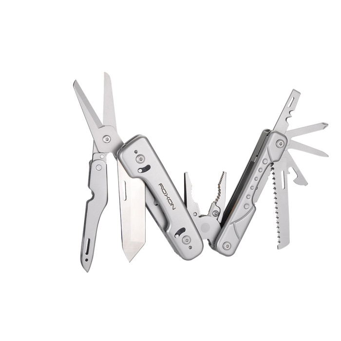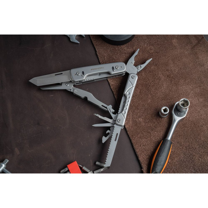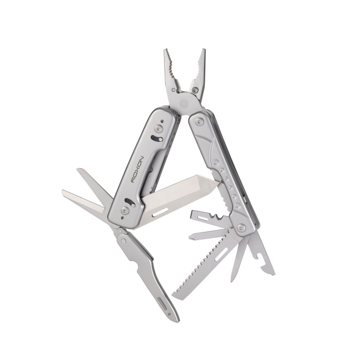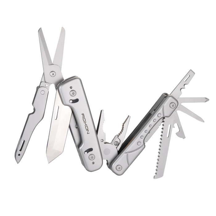 Модель мультитула Roxon Phantom S802 нагадує вже знайомий мульті інструмент Storm S801S. Компактні розміри, надзвичайно зручне використання, багатофункціональність і ефективність. Модель розроблена за принципом класичного мультиинструмента, основні пристосування – плоскогубці. Тут 15 функцій для виконання різних видів робіт на практиці.