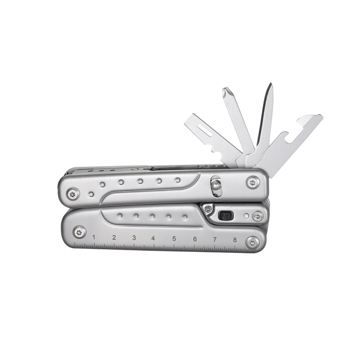 Відкривати інструменти можна буквально однією рукою, швидко і зручно. За один рух можна витягти і відразу застосувати 7 часто використовуваних функцій, і зробити це легко, навіть будучи в рукавицях. Ножиці моделі досить великі і безпечні, з ними досить просто працювати, і можна перерізати досить товсті мотузки або канати. Рукоять у ножиць має замок-перемикач для стійкої роботи інструментом. Форма леза ножа в мультитулі – Tanto, ніж потребує придбання додатково різних ліз. Можна виконувати найрізноманітніші роботи, використовуючи для них тієї чи інший тип клинка, і оптимізуючи тим самим процес.