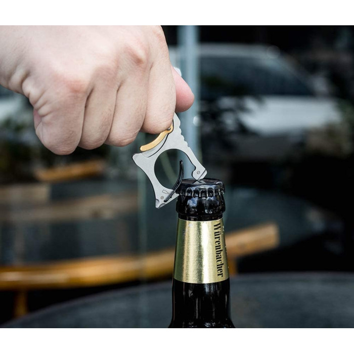 Мульті інструмент надзвичайно дієвий і функціональний, з його допомогою вдається робити багато операцій. Відкривати пляшки, розкривати коробки, щось підкручувати, повертати, а також багато що інше – легко при використанні моделі. Вона зроблена акуратною і надійною, має міцну структуру, розрахована на довгий термін застосування. Рівний контур без задирок. Ергономічна ручка. Конструкція дуги забезпечує комфортний захоплення. Задня частина має кільцеву конструкцію, що добре для стабільного зчеплення пальців і зручного використання.