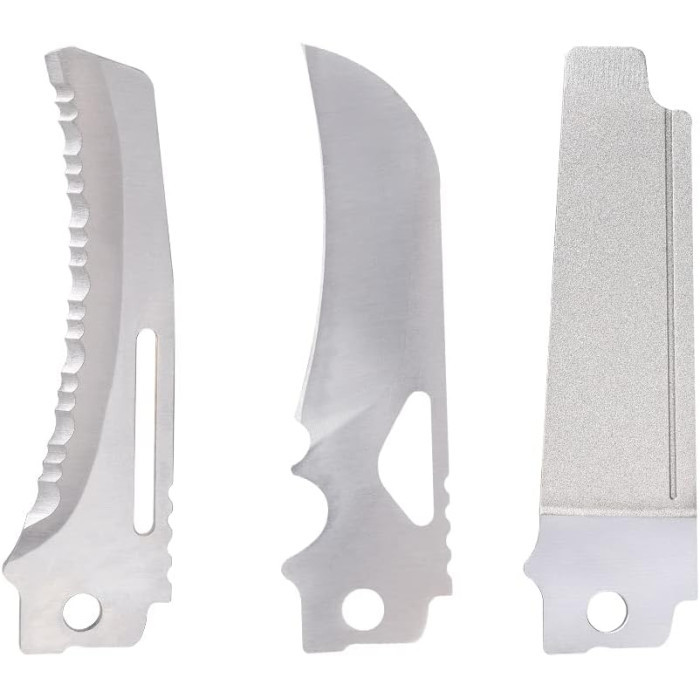 До комплекту від бренду Roxon входять три клинки, які призначені для заміни основного леза у складаних ножах S502, S502U або портативному мультитулі S802. Ці аксесуари дозволяють розширити можливості наявних в арсеналі інструментів, щоб виконувати з їх допомогою широкий спектр завдань у побуті та під час подорожі.