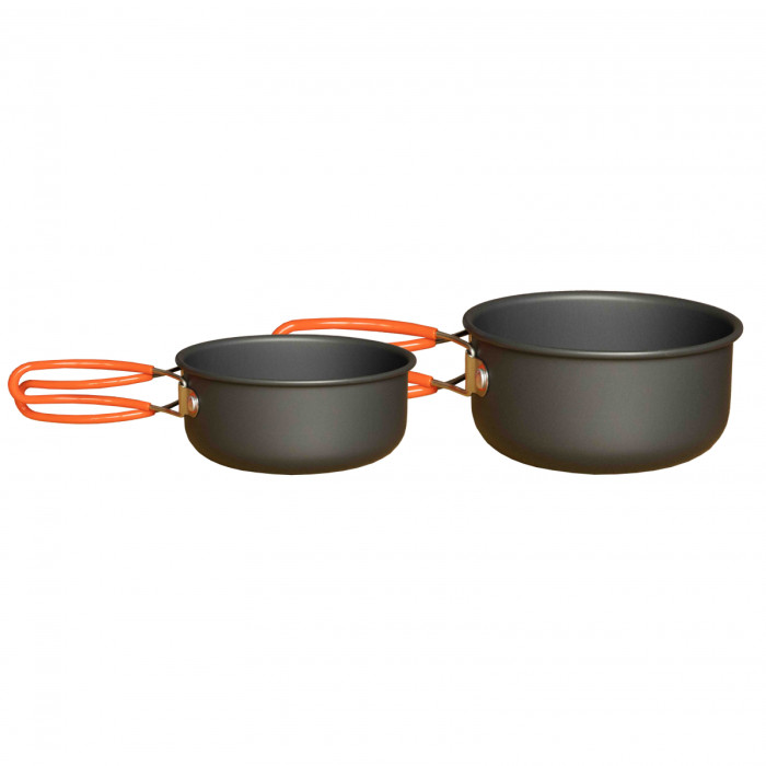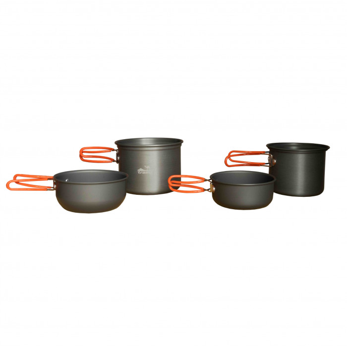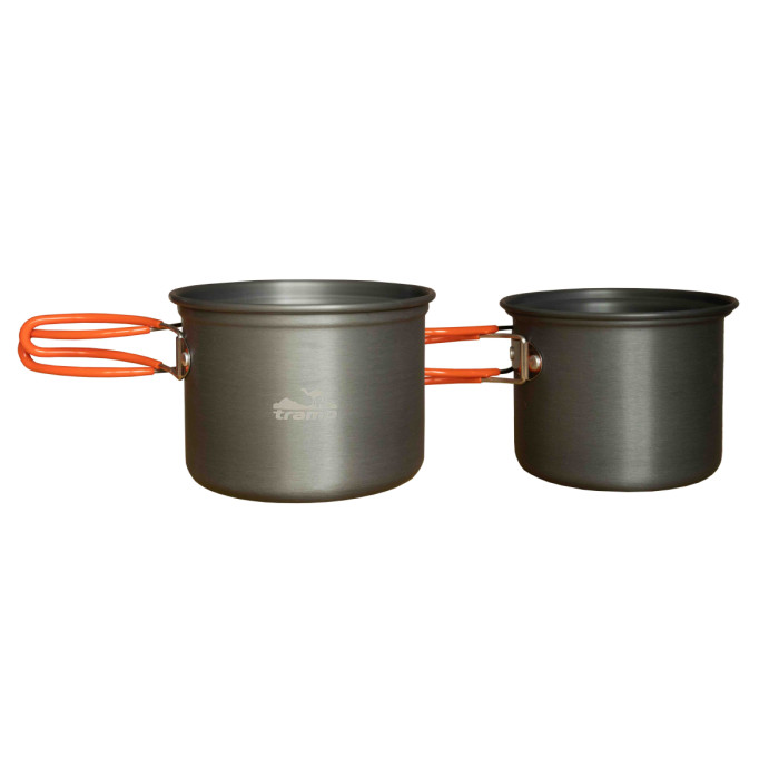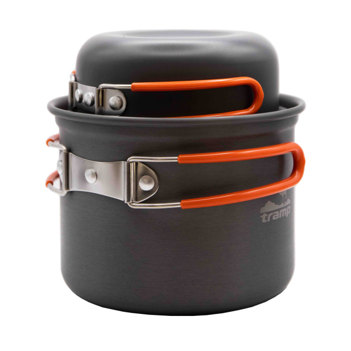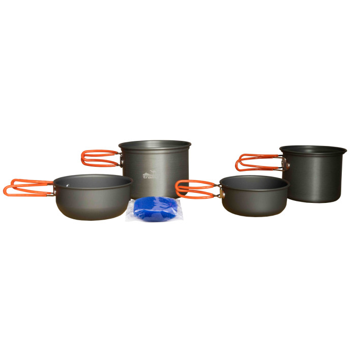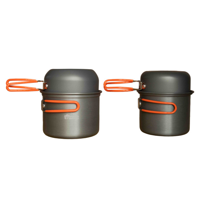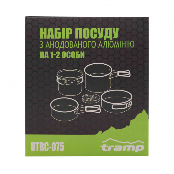 Набір походного посуду з анодованого алюмінію Tramp UTRC-075, призначений для приготування і прийому їжі на двох персон, використовуючи туристичні пальники та плити. Казанки виготовлені з анодованого алюмінію - легкого і міцного матеріалу який має високу теплопровідність. У посуді з анодованого алюмінію їжа готується швидше і краще, заощаджуючи при цьому витрати палива. Набір зручно упаковується в мішечок з синтетичної тканини. Кришки-сковорідки можна використовувати в якості мисок або кухлів.
