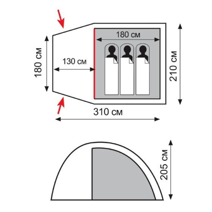 - Двошаровий намет з одним входом і великим тамбуром