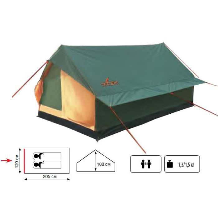 Намет Totem Bluebird. Легкий компактний одношаровий літній двомісний намет конструкції "будиночок" для нетривалих походів вихідного дня, риболовлі та відпочинку на природі. Намет можна встановлювати або на сталевих стійках (входять в комплект) або на трекінгових палицях, або розтягувати за стовбури дерев.