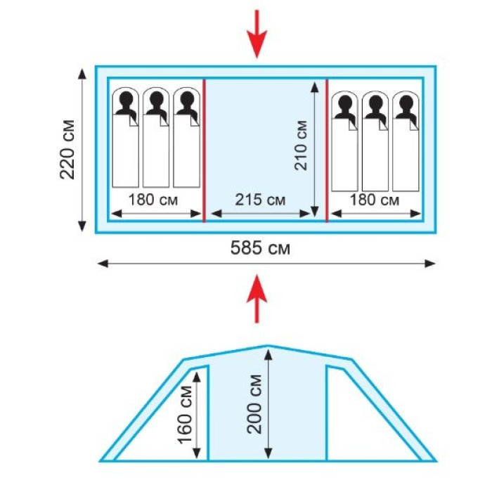 - Внутрішній намет: 100% дихаючий поліестер