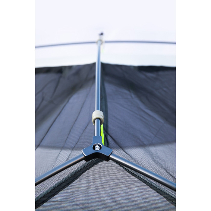 Внутрішній намет практично повністю виконаний з сітки, завдяки чому весь об'єм чудово вентилюється. В ньому практично не накопичується конденсат, і вам буде комфортно навіть в жарку літню ніч. Намет пошитий з міцного, підсиленого Rip-Stop плетінням та просоченого силіконом, нейлона з високим рівнем водонепроникності.