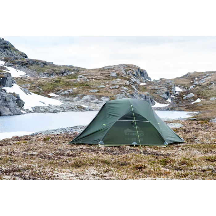 Ультралегкий двомісний туристичний намет хабової конструкції Tramp Cloud 2 Si з силіконізованого Rip-Stop нейлона, чиста вага якого (без кілків і відтяжок) лише 1700 гр.