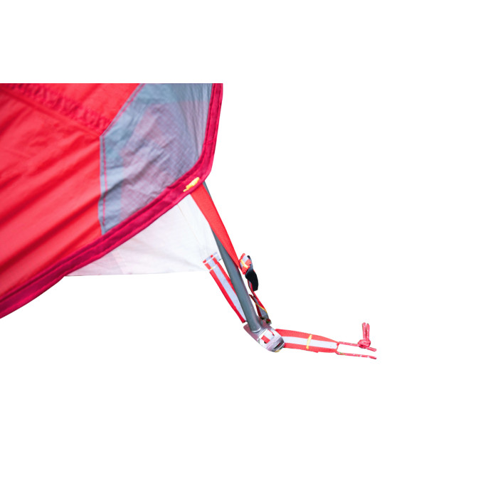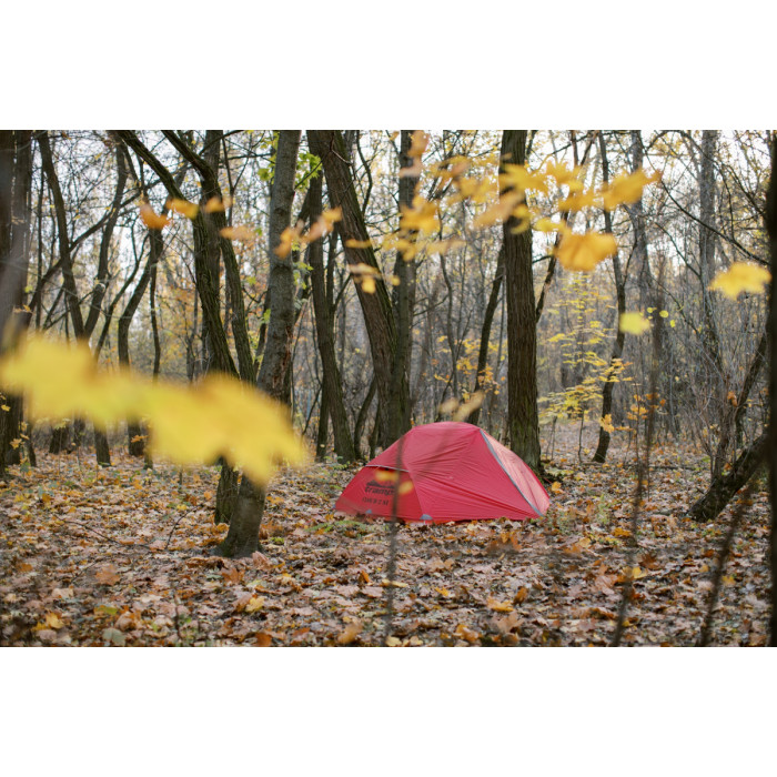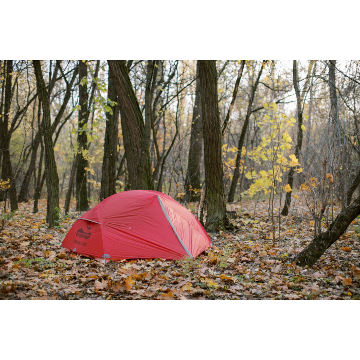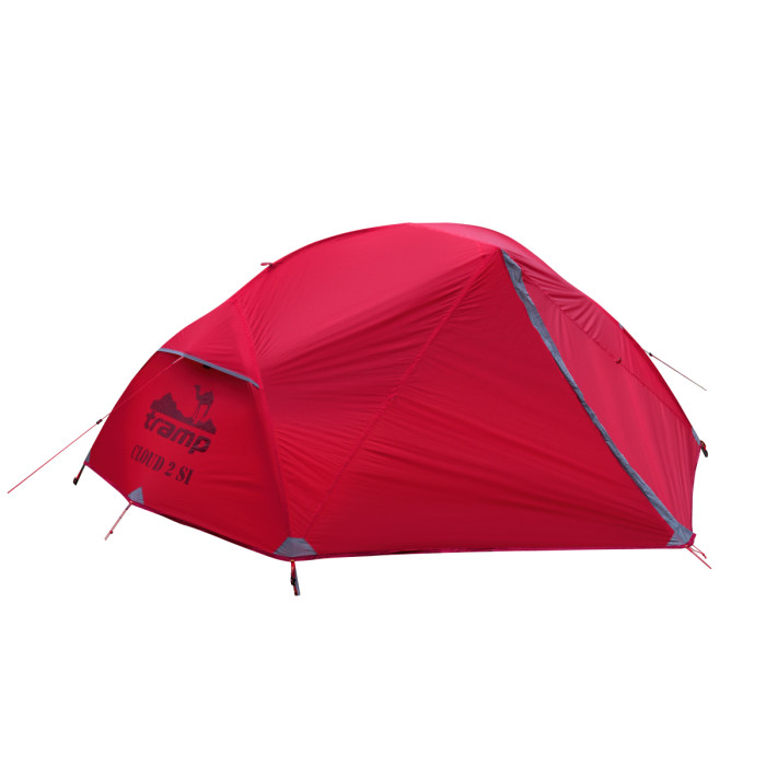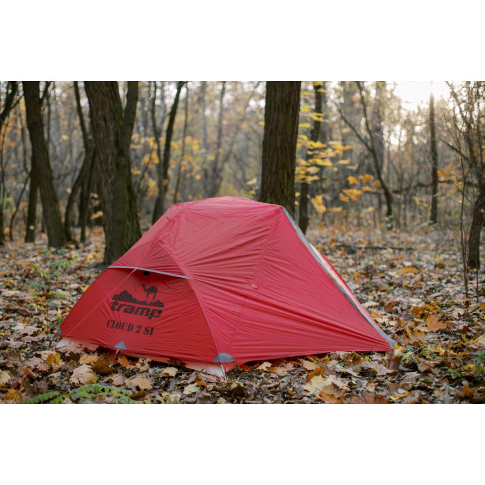 Ультралегкий тримісний туристичний намет хабової конструкції Tramp Cloud 3 Si з силіконізованого Rip-Stop нейлона. Вільностояча хабова конструкція каркасу забезпечує дуже швидке, просте, інтуїтивно зрозуміле встановлення, більший, в порівнянні з наметами інших конструкцій, житловий об'єм спального відсіку та підвищену вітростійкість. Хабова конструкція каркасу намету (HUB) – це коли всі дуги з'єднані одним конектором (хабом), який по'єднує весь каркас намету в одне ціле. Дуги не зміщуються одна відносно іншої і намет гарно тримає форму, його практично неможливо встановити криво чи з перекосом. Додаткова консольна коротка тамбурна дуга збільшує об'єм та висоту тамбурів, а також надає намету більш вітрообтічну форму. Внутрішній намет практично повністю виконаний з сітки, завдяки чому весь об'єм чудово вентилюється. В ньому практично не накопичується конденсат, і вам буде комфортно навіть в спекотню літню ніч. Намет пошитий з міцного, підсиленого Rip-Stop плетінням та просоченого силіконом, нейлона з високим рівнем водонепроникності. Завдяки світло сірому кольору тент буде значно менше вигорати на сонці, і довше прослужить, якщо ви часто мандруєте літом чи в спекотних країнах.