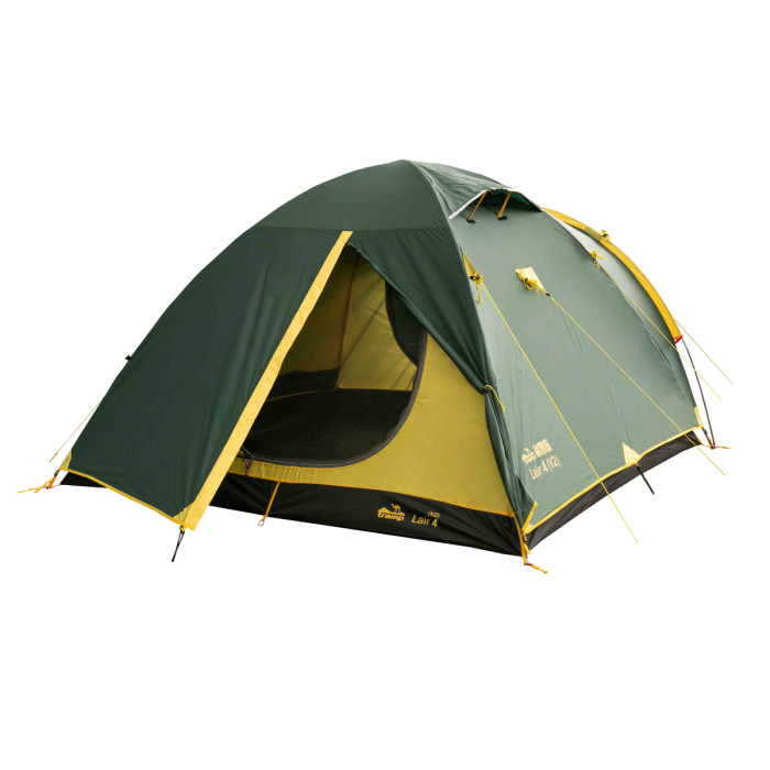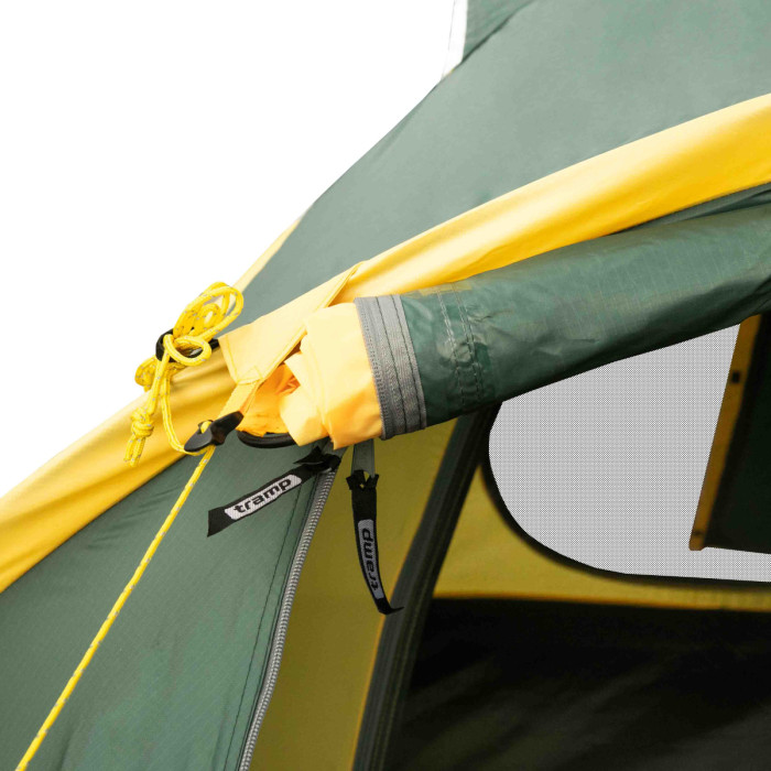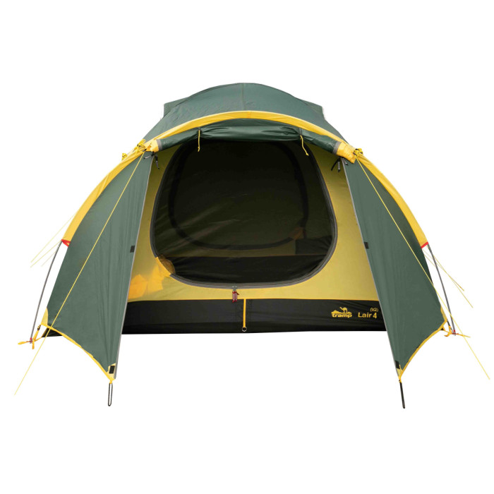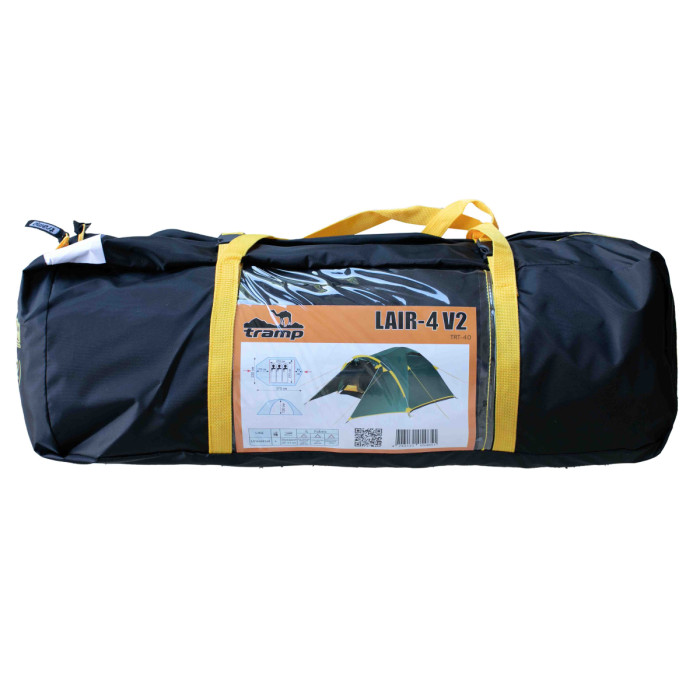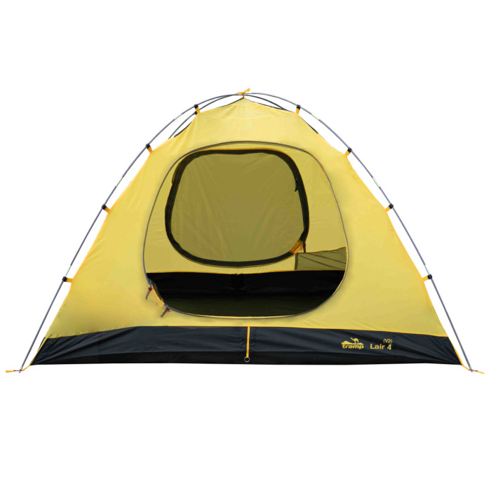 Оновлена версія універсального туристичного чотиримісного намету Tramp LAIR 4 (V2). Тридугова модель конструкції напівсфера з просторим тамбуром і двома входами. Гарне рішення для походів з тривалими стоянками на одному місці. Модель популярна серед дитячих туристичних клубів завдяки своїй зносостійкості та місткості.
