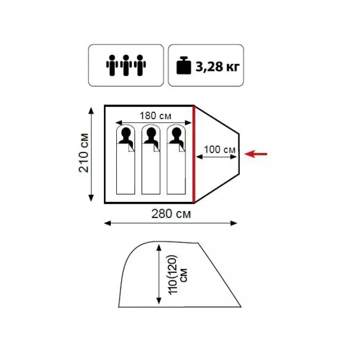 - Тент: 100% поліестер 75D/190T WR PU 4000 мм. в. ст.