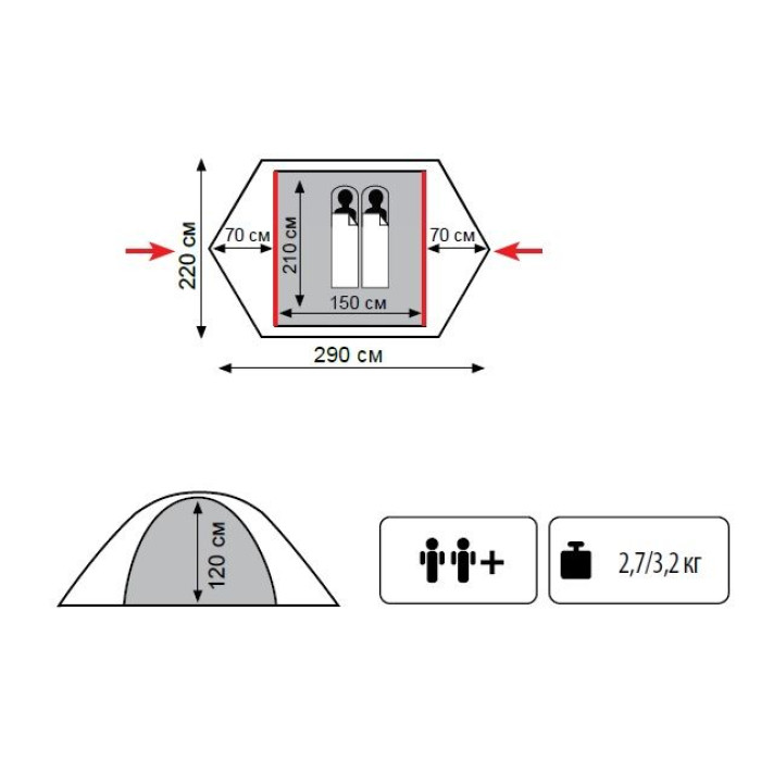 - Внутренняя палатка: 100% дышащий полиэстер