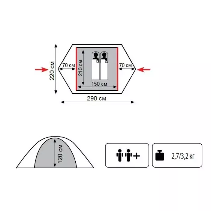 - Двухслойная палатка с двумя входами