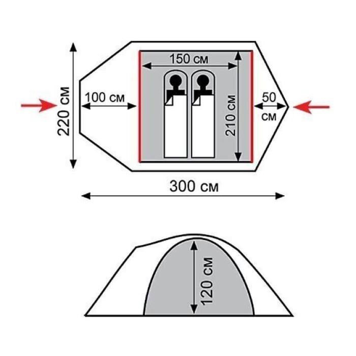 - Розміри: 300 х 220 х 120 см