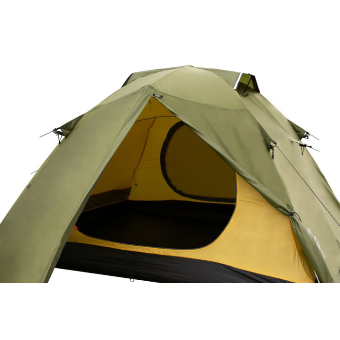 Тримісний експедиційний намет Tramp Peak 3 (V2) з двома входами, двома тамбурами збільшеного об'єму та площі. Додаткова консольна дуга збільшує площу та внутрішній об'єм т...