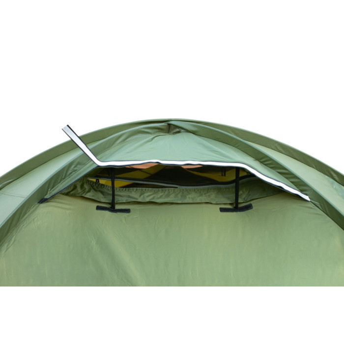 Двомісний експедиційний намет Tramp Rock 2 (V2) з двома входами та двома тамбурами. Три зовнішні дуги забезпечують виняткову стійкість намету до сильного вітру, снігу і дощу.